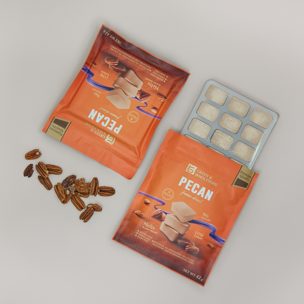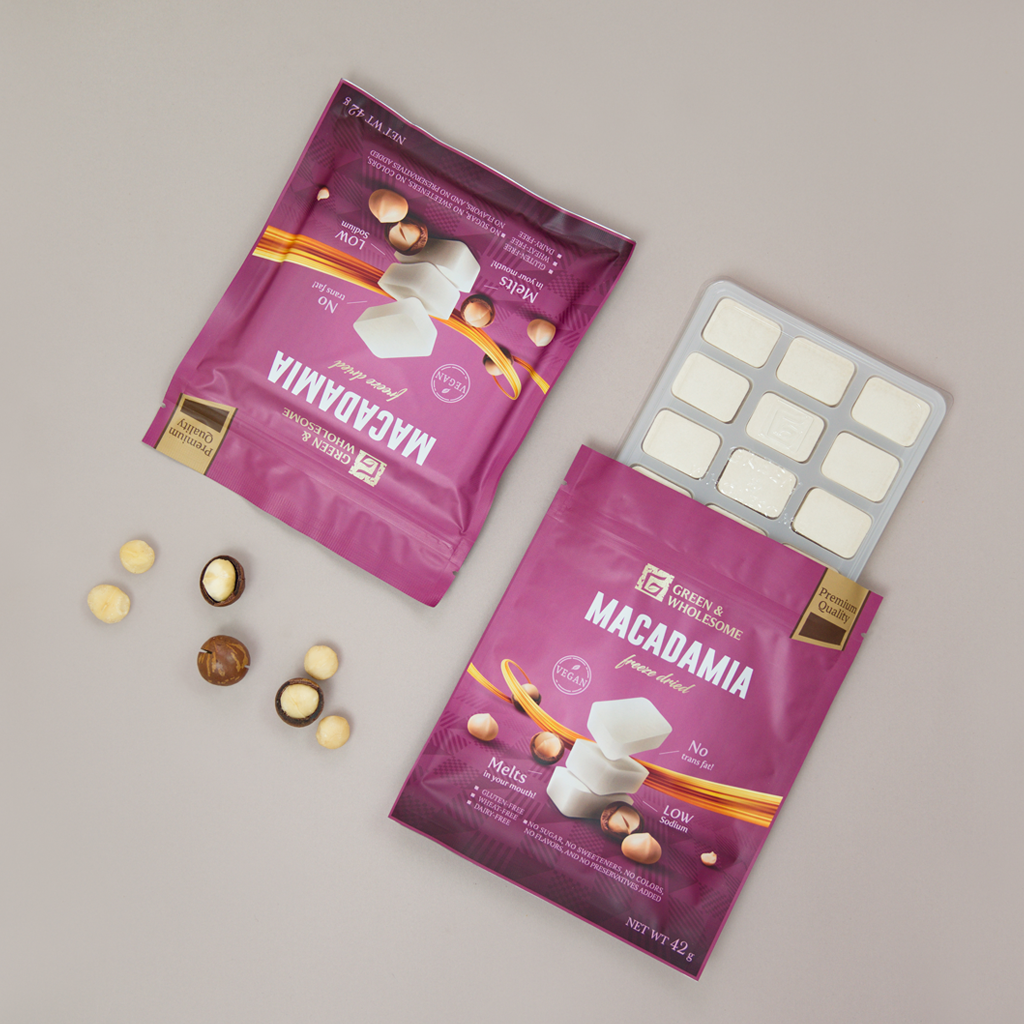 Our unique freeze-drying process gently removes water while locking in all the goodness, creating a shelf-stable snack packed with nutrients. |